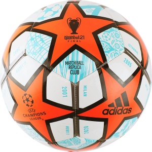 Дизайн, в котором выполнен мяч, посвящен клубам-финалистам Лиги Чемпионов УЕФА, начиная с 2001г, о чем красноречиво говорят названия городов и соответствующий год на панелях мяча.