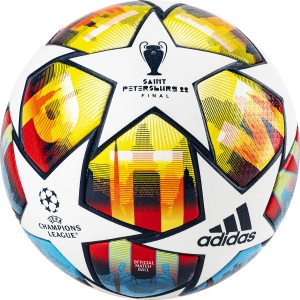 Мяч ADIDAS UCL PRO St.P - официальный игровой мяч финала Лиги Чемпионов УЕФА 2022, который должен был пройти в мае в Санкт Петербурге.