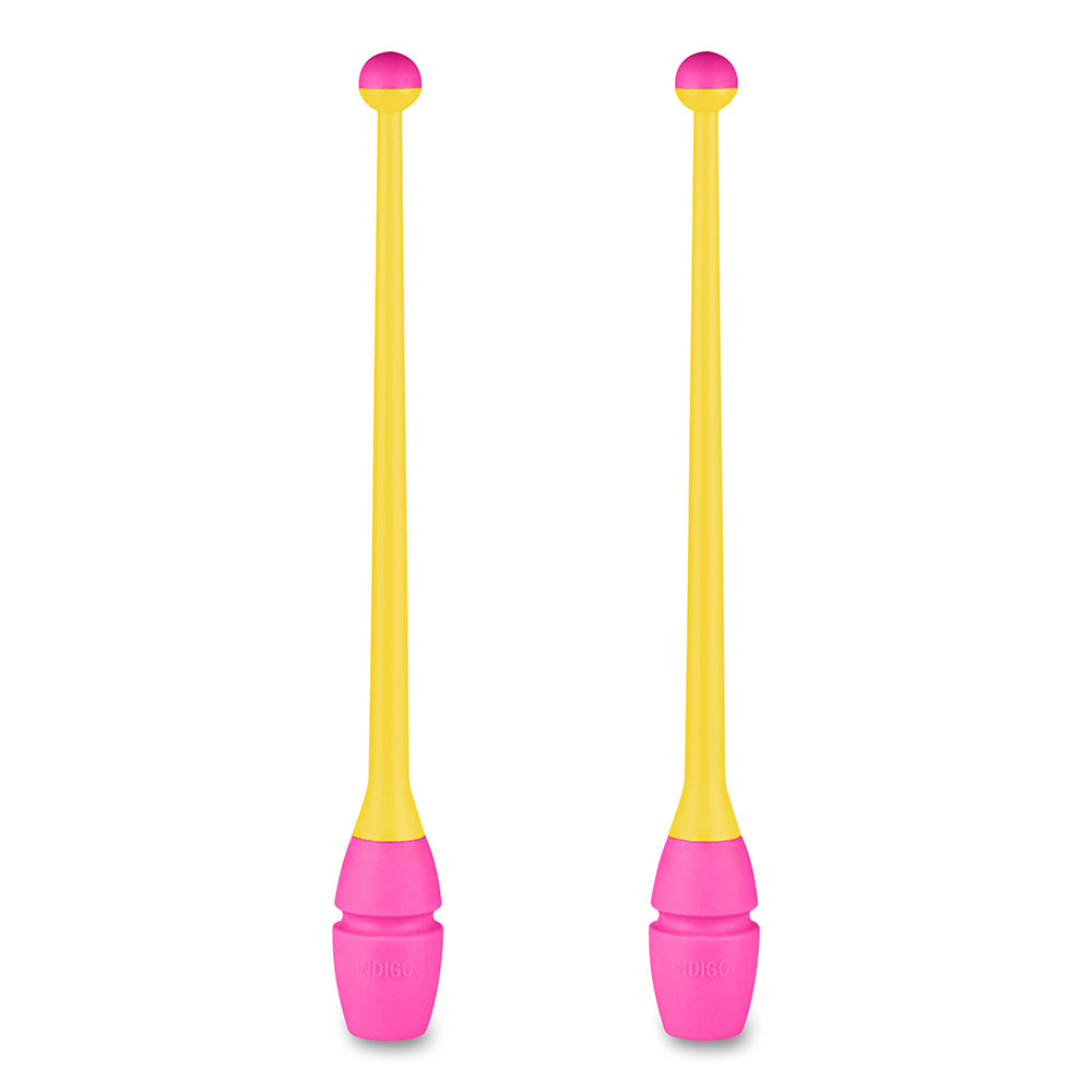 Булавы для художественной гимнастики INDIGO выполнены из двух материалов: ручка - из термопластика, голова булавы - из каучука.