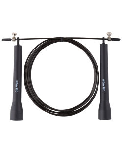 Скакалка скоростная RP-202 бренда STARFIT – многофункциональный спортивный инвентарь для фитнеса дома или на улице. Данная модель имеет удобные ручки. Легкие и приятные к коже, они обеспечивают надежный хват. Встроенные подшипники позволяют увеличить темп прыжков и повышают плавность хода шнура, а для безопасности тренировок стальной трос покрыт прозрачным защитным слоем. Длина регулируется с помощью специального ограничителя.