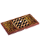 В комплект входит все необходимое: качественная доска из натурального дуба, деревянные удобные шашки и два игральных кубика (зары). Отличительной особенностью данной модели является ее многофункциональность – на одной из сторон находится дополнительная разметка для игры в шашки.